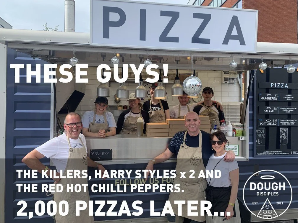 We're still cleaning out the pink feathers from the truck after the concert series at Old Trafford. 2 dates with Harry Styles (hence the feathers), The Killers & Red Hot Chilli Peppers and this dream team served 2,000 pizzas in such a short service window. What a team!